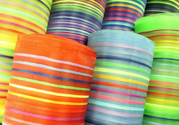 产品简介:这款网布是七彩条纹网眼,是今年非常流行的一种新型网眼面料,条纹颜色非常抢眼。 主要用于手提袋、购物袋、化妆品袋、收纳袋、沙滩包、户外手提洗漱包、、鞋类等。优点是色彩鲜艳、不褪色、抗老化、强度高、回弹快、透气、防水、耐油。 我们研发生产了多种条纹网,生产技术成熟。
