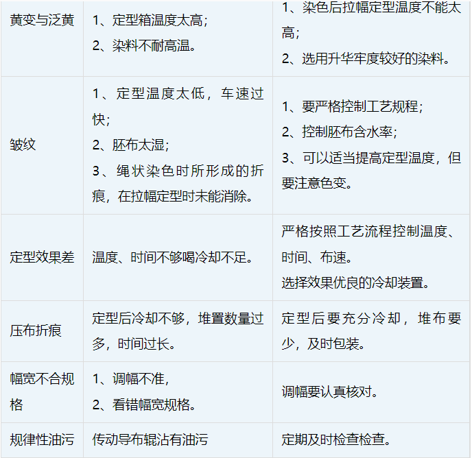 ① 为消除高温中形成的皱痕,拉幅定型温度要比染色最高温度高30~40℃。