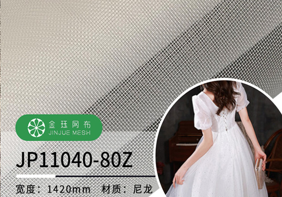 JP11001白色尼龙婚纱礼服类丝网布是我们的基本款,也是热销及应用广泛的一种尼龙网眼布, 该商品目数为10丝80目,颜色主要有本白色、肤色、金色、银色等,颜色、目数、克重门幅都可以来图来样定制。主要用于制作婚纱礼服、西服等里衬高级面料,绣花高级底料。