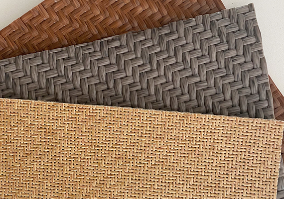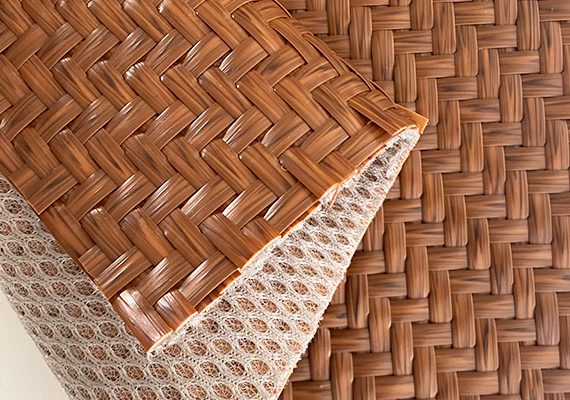 该藤编网是我司自主研发设计的一款仿竹藤网,材质是PE塑料编藤,立体编织,韧性非常好,品质好性价比也很高,门幅是1.6米,条厚0.85mm,克重约1200g/㎡,可应用在屏风、柜门、高档家具、装饰、酒店、会所装饰、茶楼、吊顶、贴墙、工艺品饰面、橱柜、家具靠背、椅垫、隔断、灯具等,上上好的户外家具选材!