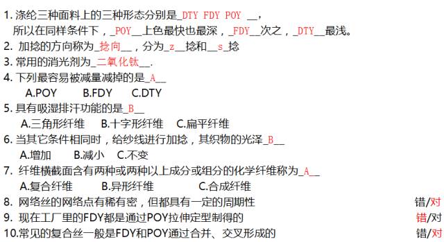 由于加工流程和工艺的不同,DTY、FDY、POY的纤维内部大分子结构排列是不同的,结晶度也完全不同,DTY二次加热,结晶度最高,POY最低。染色的时候,结晶度高的上色就难。所以如果在同一块面料中,同时有DTY、FDY、POY的话,POY颜色最深,DTY最浅。这个对以后开发面料时候应该考虑的一个因素。