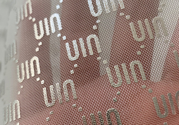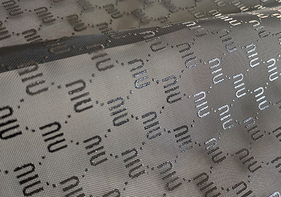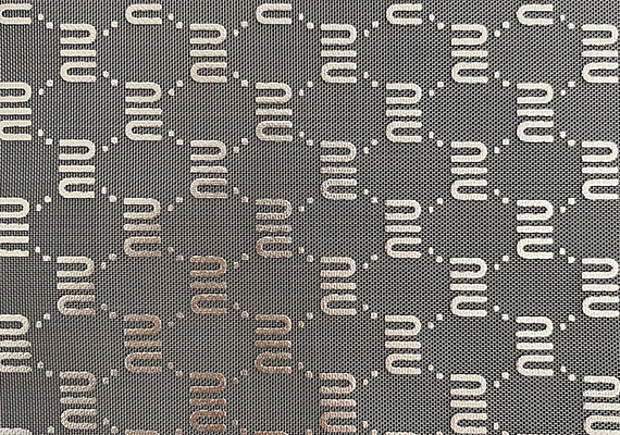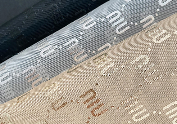此款网眼布是烫金工艺,烫金网布是以涤纶、锦纶等化学纤维为原材料再经过烫金工艺(将布料放在烫金机上进行高温等方式处理)处理后制成,一般布面上会带有花纹和图案的这类网眼布统称为烫金网眼布。
